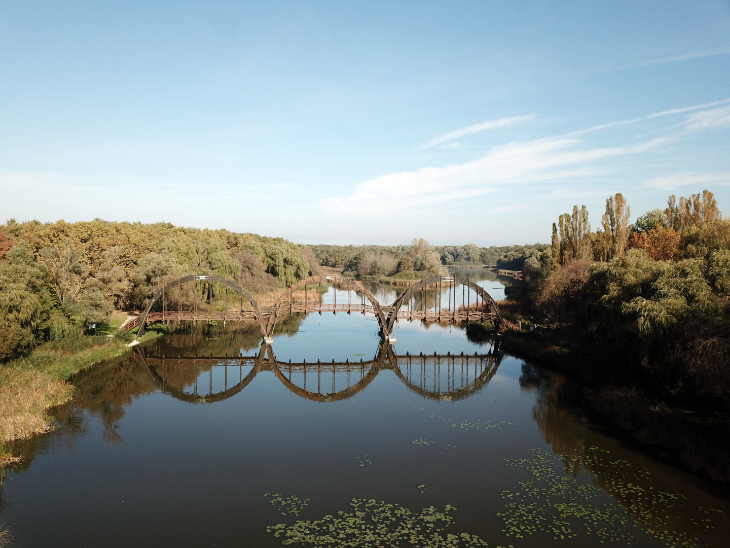 Az ikonikus Kányavári-híd Varga Gellért erdőmérnök tervei alapján készült a Kis-Balaton Vízvédelmi Rendszer építésének keretein belül, amely a 2025. évben ünnepelte átadásának 40. évfordulóját. A 80 méter hosszú, háromszor 25 méteres nyílású, íves szerkezetet a csurgói fűrészüzemben ragasztották össze, majd 1983-ban emelték helyére. A szabályos félkör alakú főtartó nagy ívmagassága jellegzetes, harmonikus megjelenést kölcsönöz az építménynek, az alatta lévő vízfelületen visszatükröződve szabályos köröket formál, teljessé téve a látványt.