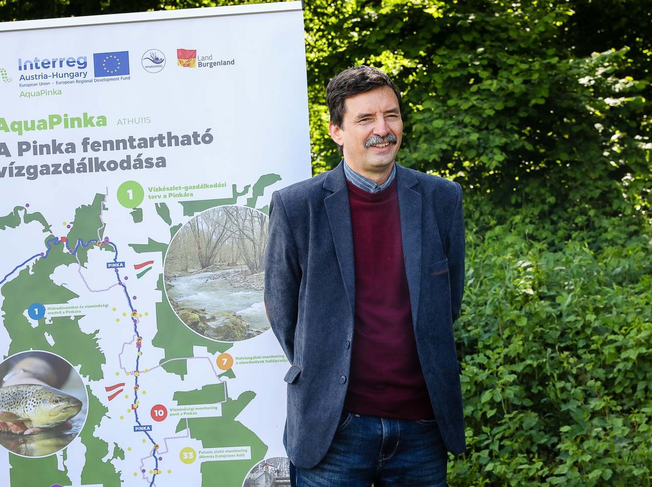 A rövid kávészünetet követően a projektet bonyolító két partnerszervezet képviselői következtek. A Nyugat-dunántúli Vízügyi Igazgatóság képviseletében Székely Edgár osztályvezető átfogó jellemzést adott az AquaPinka projektről, majd Juhász István műszaki referens ismertette részletesen a magyar oldali, Christian L. Sailer, a Burgenlandi Tartományi Kormányhivatal főreferetúra-vezetője pedig az osztrák oldali feladatokat és elvégzett tevékenységeket.