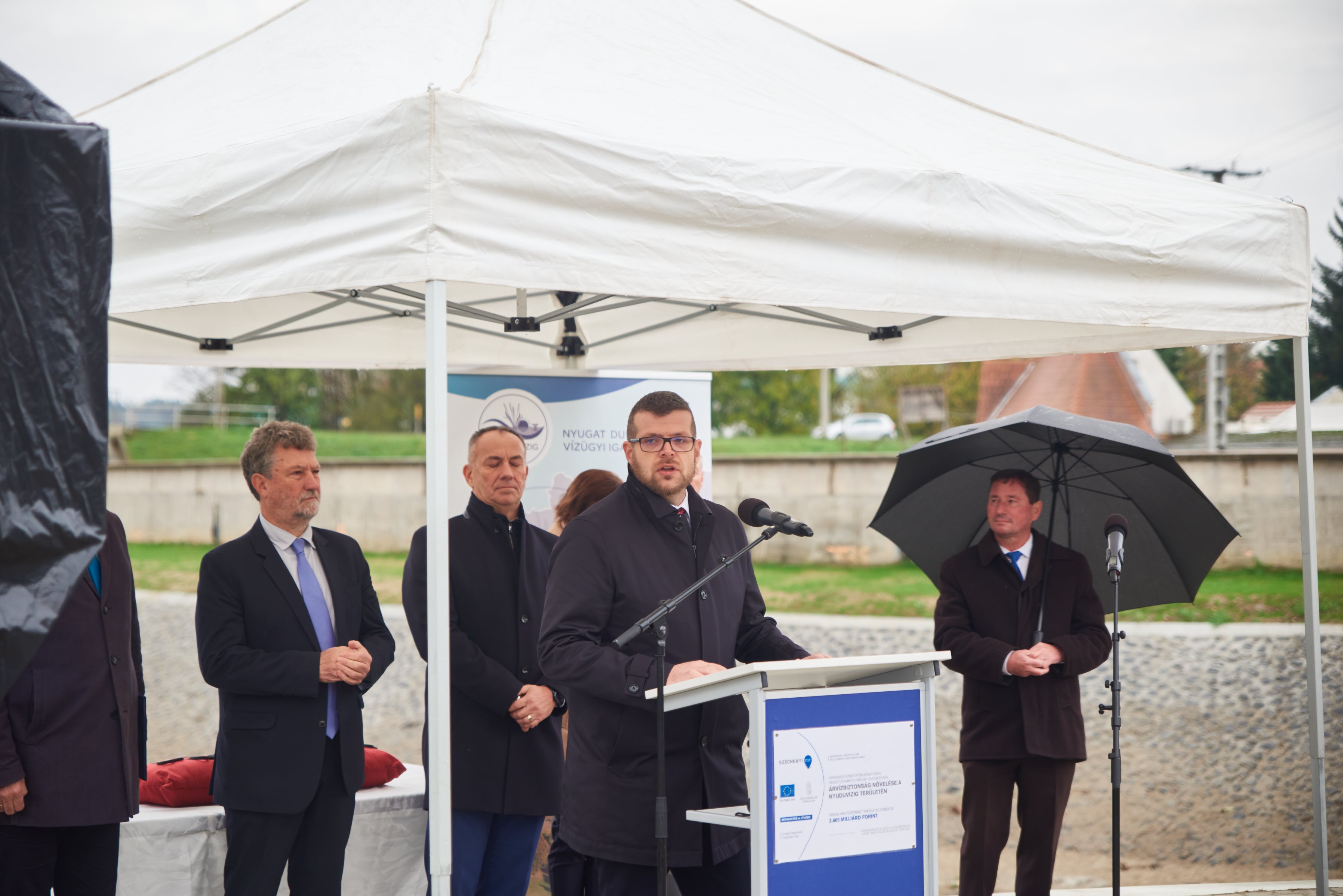 Az ünnepélyes átadáson a részt vett Vámos Zoltán főispán, V. Németh Zsolt miniszterelnöki biztos, országgyűlési képviselő, Kovács Tamás a Szabadics Építőipari Zrt. elnöke, Láng István az Országos Vízügyi Főigazgatóság főigazgatója, Gaál Róbert, a Nyugat-dunántúli Vízügyi Igazgatóság vezetője, valamint Huszár Gábor, Szentgotthárd Város Önkormányzatának polgármestere.