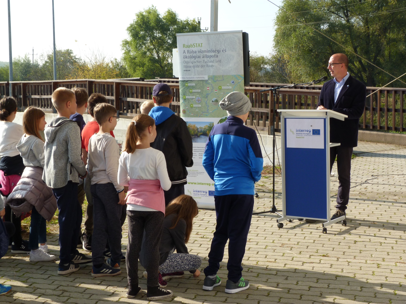 2019.10.15-én a szentgotthárdi Rába-duzzasztónál nyilvános mintavételezésre került sor az INTERREG V-A Ausztria-Magyarország Együttműködési Program 2014-2020 keretein belül megvalósuló RaabSTAT projekt kapcsán. A Nyugat-dunántúli Vízügyi Igazgatóság által szervezett rendezvényen mintegy 70 fő vett részt, többségében helyi általános iskolás diákok. A tanulók interaktív formában ismerkedhettek meg a Rába élővilágával, a vízkémiával, valamint a halas monitoringgal. A bemutatók során a résztvevők többek között kipróbálhatták a folyóból vett vízminták pH-vizsgálatát, illetve megismerték a hallépcső szerepét is, ahonnan számos őshonos és invazív hal- és rákfajta is előkerült a monitoring során.