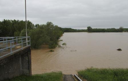 A tározó üzemét befolyásoló vízhasználatok és egyéb beavatkozások: a tározó, mint zöldtározó funkcionál, nyitott zsiliptáblákkal.