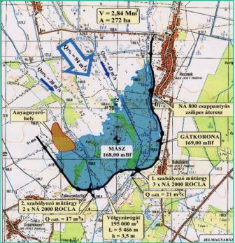 A tározó hatására a 100 éves gyakoriságú árvizek kb. 60%-kal csökkennek, a 94 m3/s vízhozam 38 m3/s-ra mérséklődik. A tározóban víz csak az árvizek levezetésekor van, és akkor is csak rövid ideig (3-5 nap), a kialakuló legnagyobb vízmélység 2,5 m. Az árvízszinthez tartozó tófelület 272 ha, az ekkor tározott vízmennyiség 2,84 Mm3.